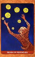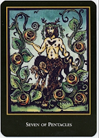 This is not my favorite representation of the seven of pentacles, but I like this card because it has the energy of assessment and waiting. It is looking at what you’ve accomplished and trying to figure out what’s next. This is where I’m at right now as I’m looking at my life and trying to figure out what’s next. There is a part of me that wants to say F* it all and go back to school full time, but I also know that I can’t afford to do that so I have to figure out how to get where I want to be while still working full time. I know that saying F* it and walking away is not the answer, which leaves me with deciding whether to stay or go at my current job.