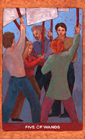 First Impressions: This card is strange as it does not give the impression of competition and / or conflict that the traditional five of wands gives