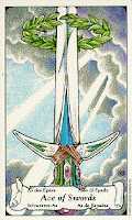 I chose to write about the Ace of Swords today because for me this card symbolizes cutting away what is no longer needed. I view it as a giant pair of scissors that cut away attachments that tangle us up and serve no purpose. As summer is here, this card could also be viewed as a big pair of pruning sheers cutting away dead wood so that what is left behind can grow and find the sunlight. Unfortunately, pruning the dead wood out of our lives is not as easy as pruning dead branches, because all too often the dead wood is relationships that have outlived their usefulness or that are strangling us.