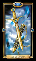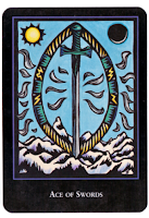 The ace of swords cuts through bullshit. This is a great card to pull when life seems murky and there is a need to step back and review. This is also a great card to pull when you need to cut ties with someone.