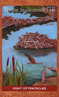 First Impressions: I love this card as it represents craft and beauty. I also really l like that it does not have the same repetitive nature as most eight of pentacles cards. This one shows that something can be one of a kind and still be beautiful.