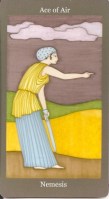 First Impressions: The first impressions of Nemesis are not positive. I get the impression that she is pointing at someone and giving them unsolicited advice or shaming them. However, she isn’t waving her sword around so I guess unsolicited advice is better than the alternative. I do love the colors on this card as the gold of her tunic is a slightly lighter color than the gold of the field. The ace of swords always tells me that this is about cutting through bullshit.