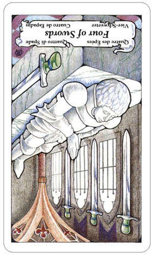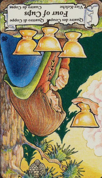 As I reflect on this card, I realize that it is about life force draining out of you and not being replenished. The traditional card has water flowing into and out of the cup and that’s what happens in the natural flow of things when energy flows into and out of our soul. When we get blocked or dis-eased, our energy gets stuck and we feel empty. I’ve learned that I truly need to take time to recharge my batteries or I become empty and cranky.