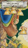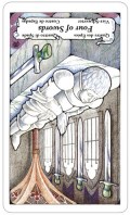 First Impressions: I don’t like this card, which is why it was one of my least favorites, it appears that the cup is suspended by the water flowing instead of the water flowing into the cup, then overflowing. Reversed this card says emotional emptiness and sadness to me.