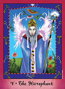 The Hierophant is one of those cards that I usually don’t like, but that there are some decks that have a version I like.  This is not one of those decks.  I do not like this hierophant as he represents everything I believe is wrong with the Christian church.  He looks cruel and the two children are bowing before him.  It also looks as if he might be ready to strike them with his stick thingy.