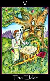 The Elder who tells me that I realized I had responsibilities in life and that if I wanted to be successful, I had to fulfill those responsibilities and could not do that if I was out partying.  The Elder is also about tradition and ritual and studying and doing the work.  The Elder is about doing the work required for initiation and not just stepping up and getting it handed to us.  Oddly this card resonates with me for another reason as well as my ex always accused me of getting my degree handed to me and not working for it.  While it is true that my parents paid for my degree, it is also true that I worked hard for everything I had and I continue to work hard for my success.