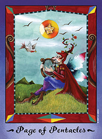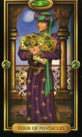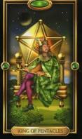 First Impressions:  This king is so much more casual than some other versions of the King of Pents.  he is lounging as if he is a man who knows his own importance and isn’t afraid to be himself.  The king of pents is clearly the master of his domain.