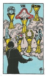 The dragonflies on the seven of cups tell me that it is my lack of alignment between my emotional wants and my intellectual thoughts that is keeping me caged. Leeza says, “The Dragonfly connects the energy of the air with the creative power of water, letting you know that thoughts and dreams really can become real. But first you have to use the energy of the Dragonfly to align your emotions with your thoughts.” All I can say about this is WOW! because when I am really honest with myself, I can see that this is true. Emotionally, I want to find the love of my life, but when I think about the reality of marriage, living together, etc., I find myself not wanting to share my house, my bank account, etc. with someone else. I really like my independence and having a relationship would cut into that to a certain extent. I think the truth of the matter is that I need to let the relationship that is right to me come to me and not get all caught up in the restrictions.