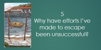 The Tower tells me that I am refusing to accept that people will like me for who I am without the mask on.  I love this version of the Tower because it shows a mask being blown away which tells me it is about the fakeness and the illusions being blown away.  I always feel like I have to be someone else in order for people to like me.  I have to do something for them, I have to buy them something, etc.  This card is telling me that I don’t need any of that.  I just need to be myself, but I can’t accept that.