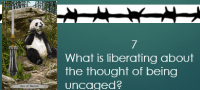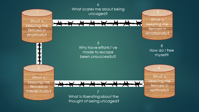 Being uncaged and free means that I and I alone am responsible for my actions.  Being uncaged means that I have to take responsibility for myself and can no longer play the victim.  I have to grow up and work with people to find a solution that works for everyone versus having my own way all the time.  Crane tells me that “Balance is not just about being even.  Balance is about finding the middle path or making it back to one’s own center.  In order to find true balance, one must make sure that one’s center is not corrupt or contaminated by the ego.”  Letting go of ego is difficult because it means I have to find balance within myself and balance in the larger world and sometimes those things seem impossible.