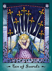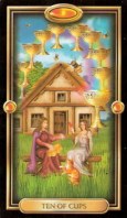 This is an interesting card and I’m not sure how to read it. What my heart is telling me is that this represents a happy and successful love relationship. I’m currently a 9 of pentacles, a single and successful woman, but this card brings in that loving partnership that I desire. This card is about the culmination and the partnership.