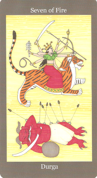 Book:  Rise up or the demon’s win, Gods invoke Durga through their combined powers, tiger representing her unlimited powers, working to protect people from misery