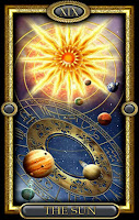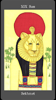 First Impressions:  Sekhmet always strikes me as so regal in this card, she is clearly a woman of power who knows how to wield it.  Her solar sundress makes me think of all the blood she has lapped up.  Overall, the sun is a card of promise and warmth.