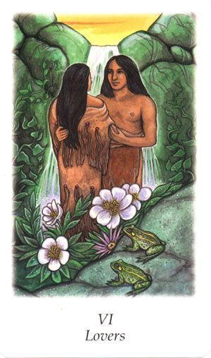 After calculating the number for my birth name and equating it to the Lover’s card, I immediately thought of the traditional meaning of the card which is choices and not really about love. On the surface alone, this was a lovely correlation as Raine Clara Shakti was a choice. I deliberately chose to name myself after a Queen, a Saint, and a Goddess in order to claim their power. At the time I chose my name, I was feeling powerless and choosing my name was a deliberate act to reclaim my power. My gut instinct also told me that the Lovers card is about balancing our male and female characteristics and that also made sense as moving out of my divorce and into the world as a single woman, I was claiming myself as a whole person and not someone who was defined by another. Interestingly, as I was looking at cards and through LWBs, I came across The Vision Quest Tarot, which is a lovely deck that I don’t use very often. Gayan Silvie Winter and Jo Dose wrote, “To be able to surrender completely, you must be at the height of your strength. Most people think only the weak surrender. But the opposite is true. You have to have the fortitude to let everything go and to fall into Love itself, without expectations without knowing whether the beloved will respond in kind or not.” This struck me because it reflects a lot of the work that I’ve been doing lately as I work to come out of my shell and open myself up to to love. I’m finding that it does take a lot of courage to say, I’m willing to open my heart up and choose to risk heartbreak.