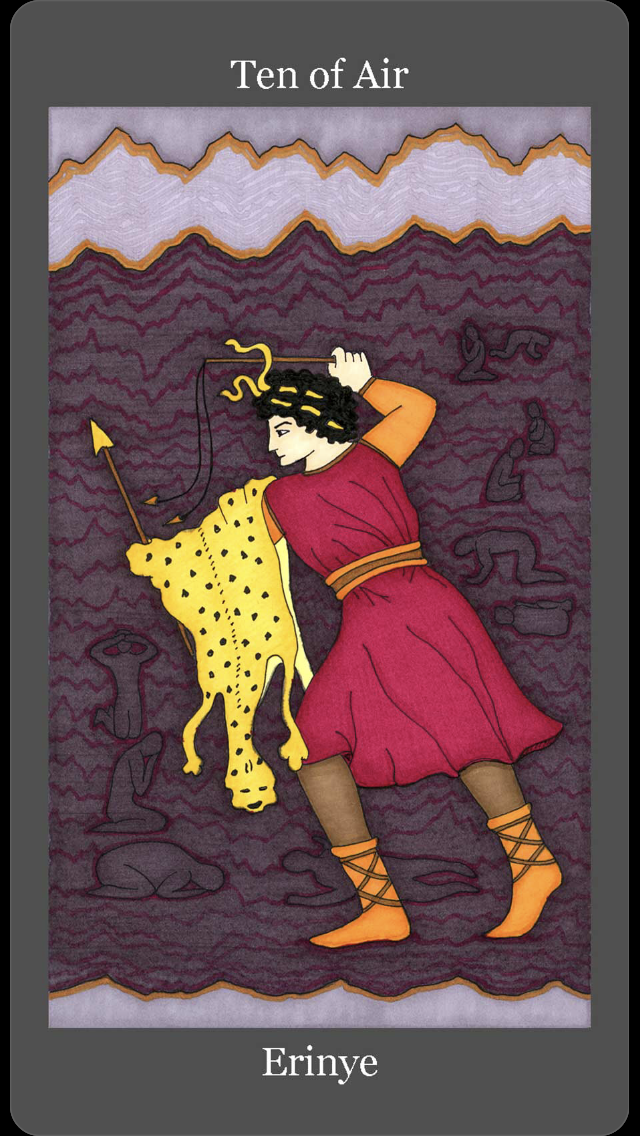 Erinye (Ten of Air) tells me that the time to be fueled by righteous indignation is past and that it is time to surrender and be led by the fates. I love this as I am finally starting to feel that I am finding my balance between being proactive and taking control of my life and letting the fates guide me. The lesson they gave me in Sedona eight years ago is one of the most amazing lessons I’ve ever been given. Living Cairn by Cairn reminds me to look for the next right action and when I’ve taken that step to look for the next one. It is an interesting way to live, but it does help stop me from excessively planning and being so caught up in planning my next move that I don’t enjoy the present moment. I’m not perfect yet, but I am definitely moving in the right direction.